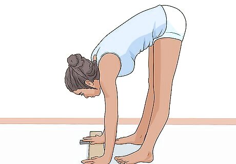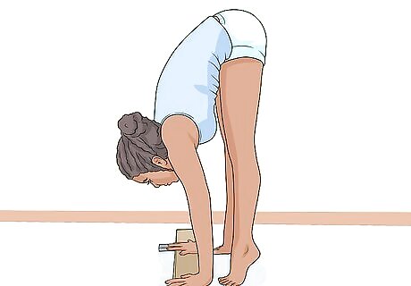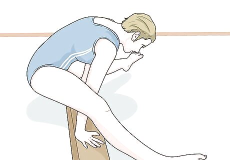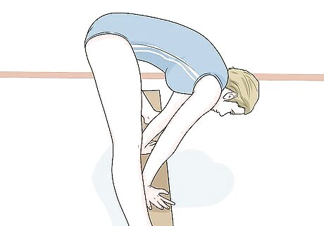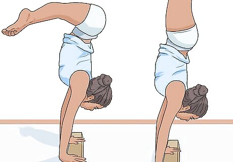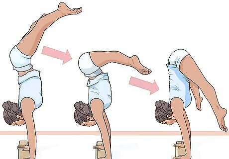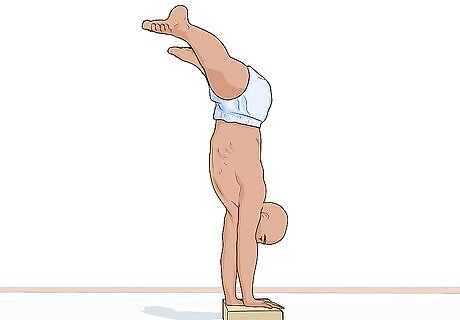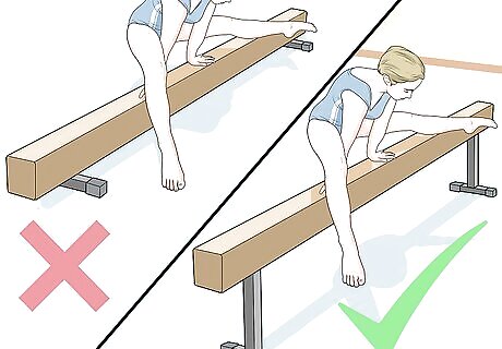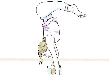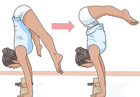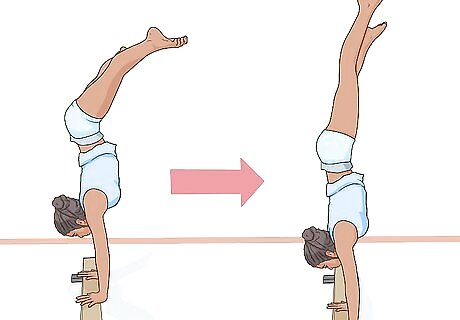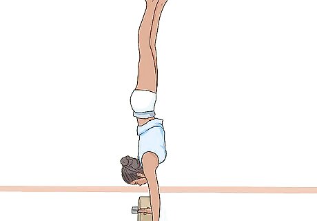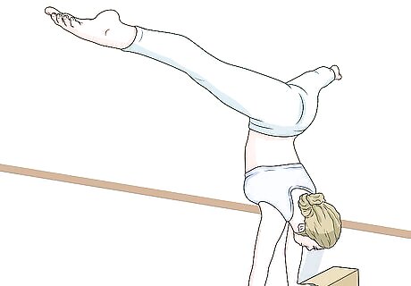 Push your legs up. As you do this, try to center your hands on the beam. Here are some tips to help you keep your balance: Look at the middle of your hands. Keep your legs are higher than your hands.