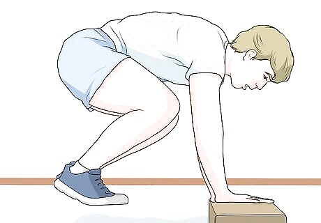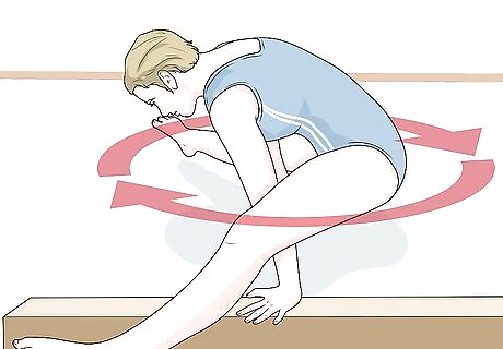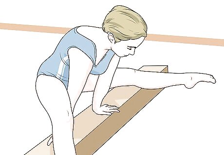 Start with your hands placed on the balance beam from the side.
