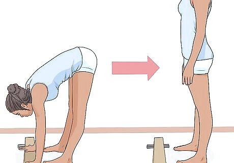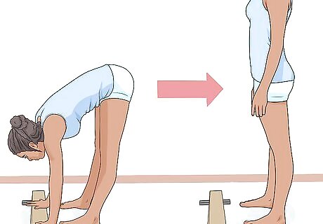 Swing your legs down and stand up. Once you have perfected this mount, you could add the press handstand part.