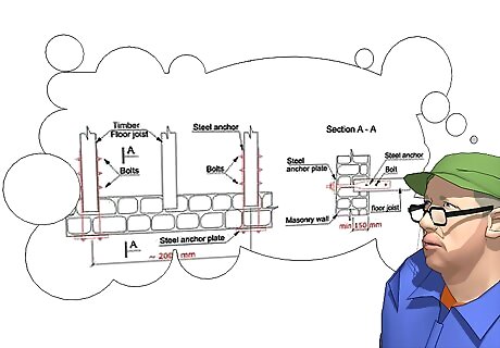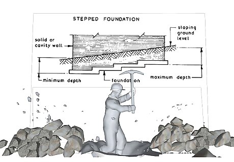 Dig all the way down to the foundation or footing of the structure you're going to be working on. If there's not enough of a footing, then you'll have to dig about a foot deep and pile in some stiff cement into that hole in order to make your own footing.