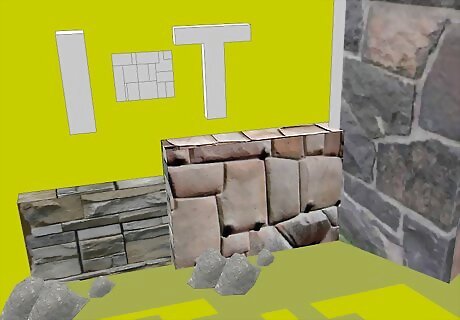 Learn how to do wall rock. Wall rock is the type of work stonemasons do the most. Separate the two words "wall" and "rock", meaning you're putting rock together with "mortar" in order to make a wall.