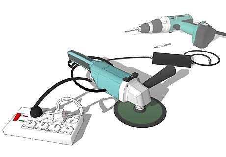 Get your tools and plug them in and place them where you'll need them. Sometimes you won't need all your tools but take out the ones that you'll need with that specific job. If you don't know which tools you'll need, take all of them.