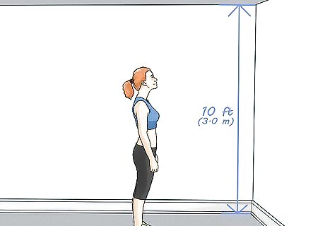 Find a strong wall that’s at least 10 ft (3.0 m) high. If you’re at a CrossFit gym, look for the tall wall with a bunch of hash marks or height measurements on it. If you’re not at a CrossFit gym, find a reinforced concrete wall or pillar that won’t dent or break when you hurl a heavy ball at it. If you’re at home, an exterior concrete wall is perfect. It may be kind of tough to do wall balls indoors at home.