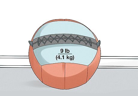 Grab a soft wall ball or medicine ball that weighs around 9 lb (4.1 kg). Wall balls are soft, heavy balls that kind of resemble plushy medicine balls. Pick up a wall ball that weighs 9 pounds (4.1 kg) if you’re just starting out. You can use a slightly heavier or lighter ball depending on your level of fitness. The form and number of repetitions are much more important than the weight of the ball, so opt for a lighter ball if you aren’t sure how heavy you should go. You’ll still get a great workout in with a 6 lb (2.7 kg) ball! If all you’ve got is a soft medicine ball, no problem. There isn’t that much of a difference.