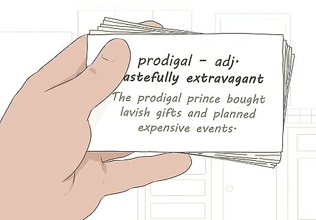 Study vocabulary in context instead of memorizing definitions. Since vocabulary is such a big part of the GRE, many people think that memorizing a lot of definitions is the best way to study. But it’s more important to understand words in context, because most GRE questions use one or more words in a sentence. So rather than spending all your time memorizing definitions, spend more time looking at how words are used. This is especially important for reading comprehension questions. Know a few synonyms and antonyms for words as well. This is important for sections that use multiple words in a sentence.