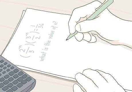 Practice math with and without a calculator. You're allowed to use an on-screen calculator during the GRE, which can be a great resource. However it can be a waste of time if you type everything into the calculator. Do your practice tests without a calculator at first and see how you do. You may be surprised how little you need it. Then introduce the calculator but only use it when you're stuck. This teaches you to use the calculator effectively and not waste time with it. Take note of particular situations where you need your calculator. If a particular equation or problem type always throws you off, use the calculator right away when you see these problems. This is strategic calculator use.