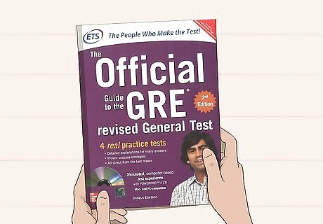 Use a high-quality GRE prep book. Testing companies publish books with prep tips, exercises, and sample tests. These are great resources for GRE prep because they contain real questions from past tests. You're at a disadvantage if you don't use these sources. Some of the most well-known and reputable prep companies are Kaplan and Princeton Review. These books can be expensive. Fortunately, most libraries carry them. See if your college library or a local public library carries prep books. Check out as many up-to-date ones as they have. These same companies also have digital resources. Check their websites for other materials.