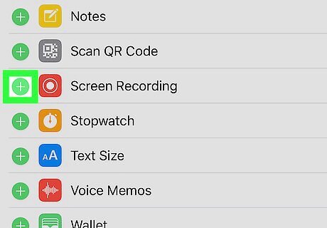 Tap the iPhone Add Widget icon next to iPhone Screen Recording Red. This will add the screen recording ability to your control center.