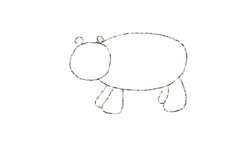 Add details to body and feet. Draw a tail. Remember: every line you make adds to his personality.