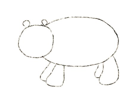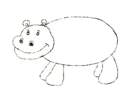 Give your hippo a face: eyes, eyebrows, nostrils, teeth - whatever you want. Make him what you want him to be.