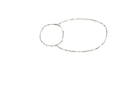 Draw a large oval. This is the body. Add a smaller circle for the head.