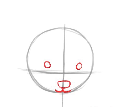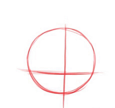 Draw a circle for the head. Add guidelines for the facial features.