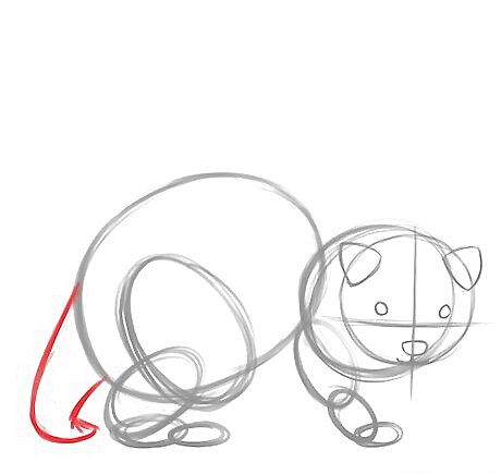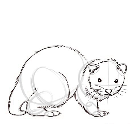 Draw a short tail for the ferret. It should look like what’s shown, falling in a smooth line and curving slightly where it hits the ground.