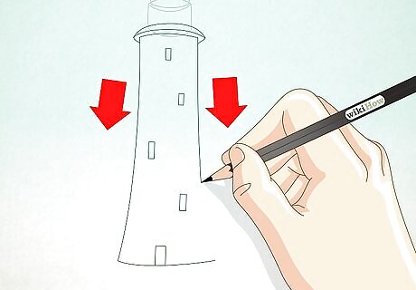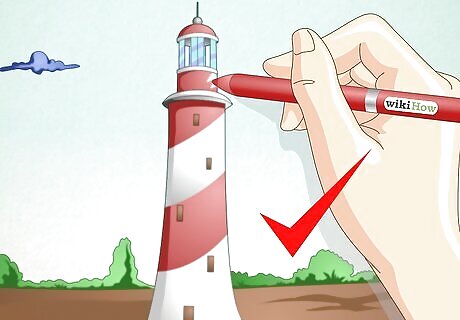 Practice some more styles of lighthouses. There are many different styles of lighthouses around the world. Borrow a book on lighthouses from the library for more inspiration or do an image search online for more ideas. Expand your lighthouse drawing repertoire through trialing various different lighthouse designs that interest you the most. Also try drawing lighthouses at different times of day and night or during different weather types to vary the shading and seasonal appearance.
