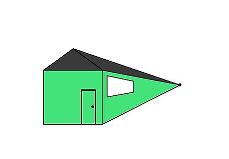 Draw a small dot at a point far away from your house. This will be your vanishing point.