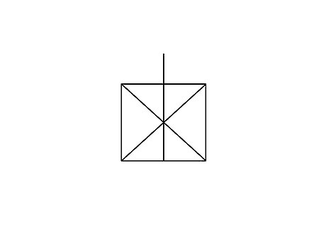 Starting where the "X" meets in the middle, draw a line straight until you reach the height you want the middle of your roof to be.