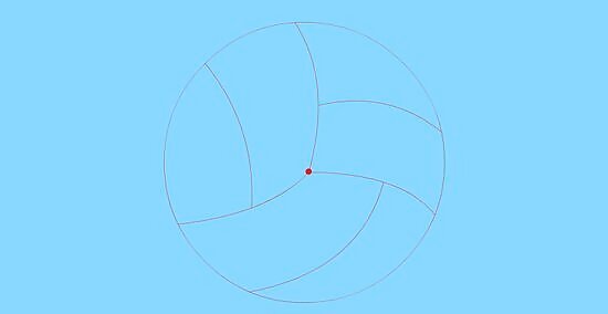 Draw three lines on the volleyball, starting from the dot, and extending outwards to the edge of the circle. The lines should all be slightly curved in the same direction. The circle you drew should now be split into three sections.