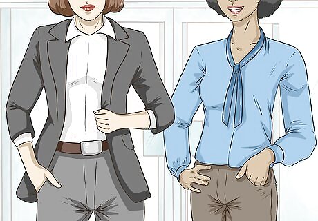 Choose clean-cut tops that fit you well. When you’re shopping for shirts, be sure to try them on to make sure you get a perfect fit, since a shirt that’s too tight or low-cut can send the wrong message in the office. Whether you prefer button-down styles, polo shirts, or flowy blouses, stay away from styles that show too much skin, and if a shirt is see-through, always wear a shell or cami underneath. Keep in mind that spaghetti straps are not considered office-appropriate.