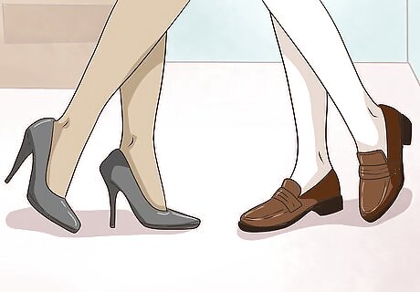 Wear practical dress shoes to work. Depending on your style, you can wear heels or flats to the office. However, make sure that whatever you choose is comfortable. If you want to be the boss, you’ll need to be able to hustle and get things done all day, and shoes that pinch your feet or make it hard to walk won’t help you accomplish your goals. Boots, pumps, loafers, and dressy flats are all great options for the office. Your shoes should be neatly polished to ensure they’re work-appropriate. Avoid open-toed shoes, as these typically come across as unprofessional. If your office is very casual, a pair of nice-looking sneakers may be acceptable, but they should still be free from scuffs.