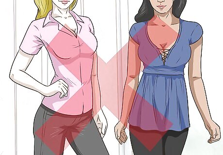 Avoid tight-fitting or low-cut clothing. As a CEO, it’s important to project confidence and competence. If your clothing is too tight or you’re showing too much cleavage, you can send the wrong message, and the focus will be on your body, rather than your accomplishments. To avoid this, opt for clothing that skims your figure without being form-fitting or baggy, and cover up your décolletage. If the top you’re wearing is too low-cut, wear a sleeveless shell underneath it, or take it to your tailor and have an extra stitch sewn into the neckline to close it. Also, when you’re choosing button-down shirts, make sure they fit comfortably and don’t gape across your chest.