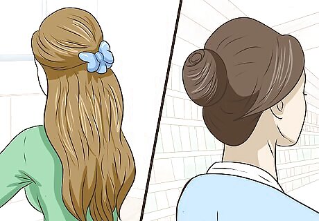 Style your hair each day. Like it or not, your hair is part of your outfit, and you’ll need to take a little time each day to make sure it looks nice. If you’re wearing your hair down, blowdry it into a sleek style, or curl it into neat waves. If you’d prefer to wear it up, smooth your hair into a Do a bun or a classic chignon, twist it into a French braid, or pull it into a low ponytail.