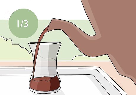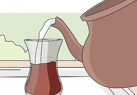 Pour the actual tea from the top, smaller teapot. Turkish tea is presented on a tray with 2 teapots stacked on top of each other. The smaller teapot on top is full of the actual flavored tea, while the bottom one just has hot water. Pour your tea from the top teapot first. If the teapots come out side by side, the tea is most likely in the smaller one.