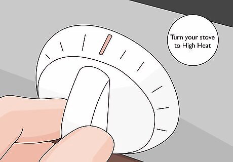Bring the large pot to a boil. Turn your stove up to high heat and wait until you see large bubbles rising up in the larger teapot. Depending on your stove, this may take around 5 to 10 minutes. The tea leaves won’t burn, but they will get warm.