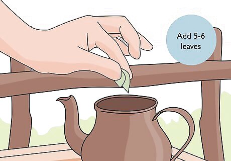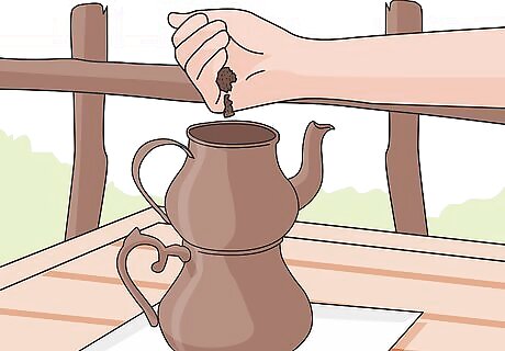 Add 5 to 6 tea leaves to the small teapot. Turkish tea is made from black tea leaves, which are stronger and more potent than other teas. Drop 5 to 6 of these leaves into the small teapot to flavor the water.Did You Know? In Turkish, the smaller teapot is called a Demlik.