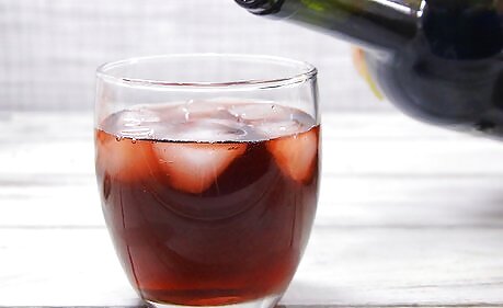 Drink vermouth on the rocks. With such rich flavors, both red and white vermouths are delicious on their own. Put one large chunk or several small cubes of ice in a small glass or tumbler and add 3 fluid ounces (89 mL) of chilled or room-temperature vermouth. For dark red vermouths, garnish with an orange peel. For lighter vermouths, use a lemon slice or a skewered olive.