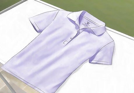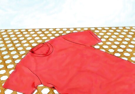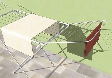 Hang your clothes on a clothesline to dry outside. If you live in warmer, sunnier weather, take advantage of being able to dry your clothing outside. All you'll need to make your own clothesline is a strong rope that you can tie between two trees or two poles. Your clothes should take a few hours to dry. Avoid hanging your bright and dark colors in direct sunlight, as the sun could make the colors fade. Hang your line high enough off the ground so that if you hang something heavy, like a blanket or something denim or made from other heavy fabrics, it will not touch the ground and get dirty. Pin your clothes onto the line using clothes pins. These can be purchased online or at most home goods or big box stores.