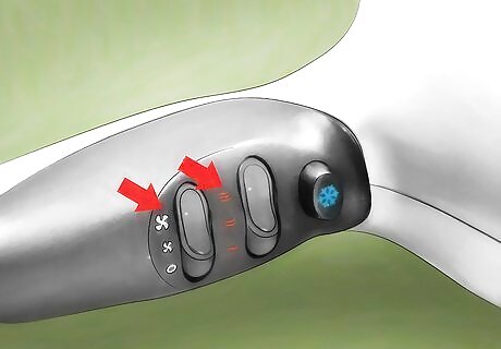 Turn your blowdryer to a warm and high setting. Most blowdryers have low and high settings for the pressure of the airflow – put your blowdryer on high. You should also put your blowdryer on warm instead of cool – this is for the temperature of the air. To avoid damaging your clothing, hold the blow-dryer a few inches away from your fabric. Blow-dry the entire surface of the garment, front and back. Continuously move the blowdryer so as not to burn the fabric in any spots. For fabrics prone to shrinkage (like wool), use the cool heat setting instead of warm.