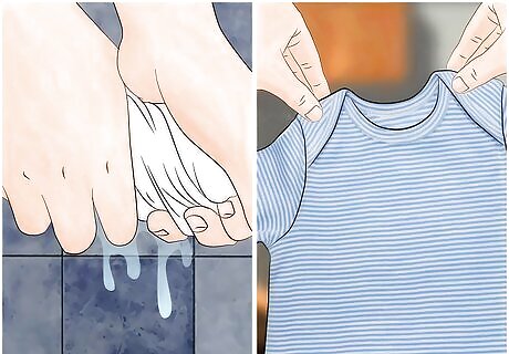 Drain the excess water by picking up your rolled towel and twisting it as tightly as possible. As you do this, the towel will absorb water from the wet garment. Once you have done this, unroll the towel and remove your garment – it should feel barely damp at this point. Only wring out one garment at a time so that you can get the most excess water out of each garment. Once your towel has become very damp, switch towels. Your towel must be relatively dry to absorb the most amount of water. If you're drying small items, such as socks, spread them out on your towel so that you can wring them at the same time. As long as these small items aren't touching, it will be like wringing out one large piece of clothing.