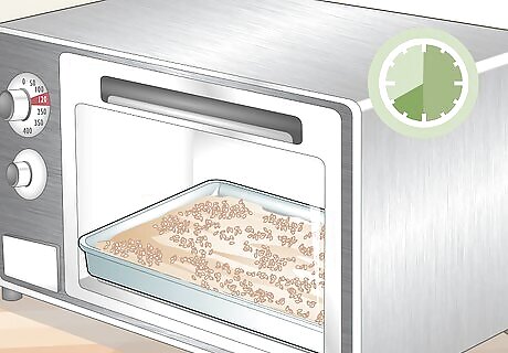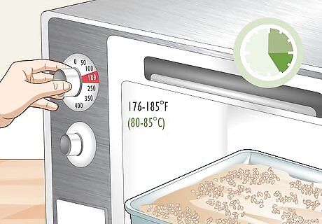 Roast the malt at 176 to 185 °F (80 to 85 °C) for 3 to 5 hours. You can keep your malt on the baking tray or food dehydrator tray that you spread it on. Turn up the heat and let your malt roast for 3 to 5 hours for a pale malt. This is also called kilning. For a darker malt, roast your kernels at 225 °F (107 °C) for 4 hours.