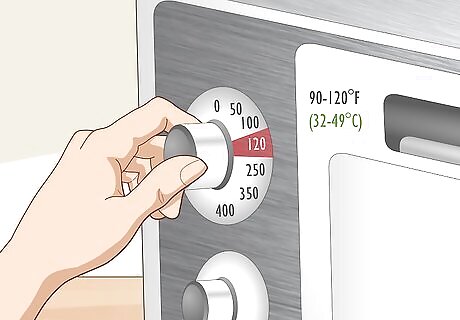 Set your oven or food dehydrator to 90 to 120 °F (32 to 49 °C). The barley is going to need to dry out at a low temperature so that it doesn’t burn. Keep your oven or food dehydrator down low as you dry out your malt. If you dry your malt out at a high temperature, it won’t mash as well.