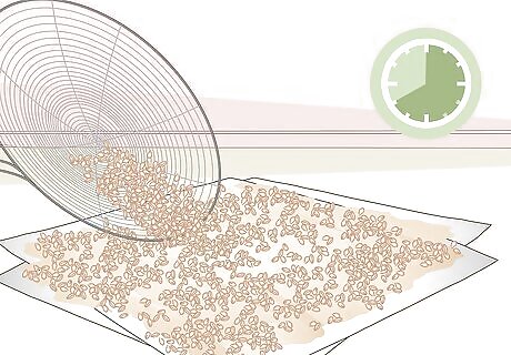 Drain the kernels and dry them for 8 hours. Drain the water from the bucket using a strainer or a spigot, if you have one. Spread the kernels out on a paper towel or a baking sheet in a single layer and leave them in your basement or garage to dry. Drying out the barley is super important. If it doesn’t get enough air, it could rot.