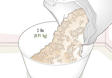 Place about 2 pounds (0.91 kg) of raw barley into a large bucket. Depending on how much barley you have, a 1 gallon (3,800 mL) bucket should work. Make sure all of your barley can fit in the bucket with enough room at the top for excess water.Tip: You can find barley at most farm supply stores. Make sure there aren’t any moldy or rotten kernels in the bag before you buy it.