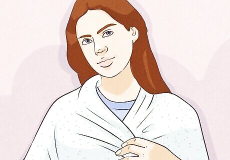 Wipe excess dye off of your neck and forehead with a paper towel or wet cloth. Do not disturb the dye in your hair. If you want, you can put a shower cap on your hair to keep the dye from going everywhere. Once you have put a shower cap on, you can wrap your head in a towel so that the cap retains the heat of your head. This will speed up the dyeing process.