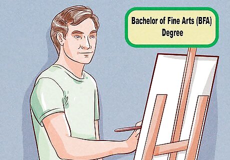 Earn a Bachelor of Fine Arts (BFA) degree for the creative arts. BFA degrees are intended primarily for people who plan to make a career in creative fields like painting, dancing, acting, etc. You’ll have a good deal of major-focused classes to take, but still have a bit of space for electives and general education courses. BFA programs aren’t as ubiquitous as BA or BS programs, but you still shouldn’t have much trouble finding schools that offer BFA programs.