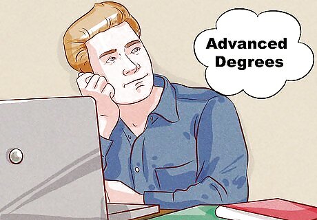 Plan ahead for any advanced degrees you’ll need or want. If you’re planning on a career in business, law, medicine, computer science, teaching, or a host of other fields, you’ll eventually need advanced degrees—like a master’s degree or doctorate—to get ahead in your career. Since a bachelor’s degree is a prerequisite for earning advanced degrees, take earning it seriously as an important stepping-stone. Some advanced degrees require a bachelor’s degree in a particular field, while others do not. For example, if you want to go to med school, plan to major in a physical, biological, or social science. If you hope to eventually earn an MBA, for instance, look for bachelor’s programs that have good placement rates into MBA programs.