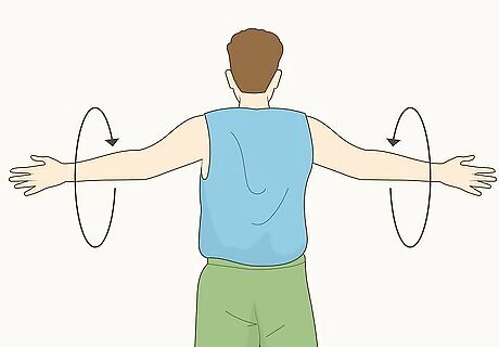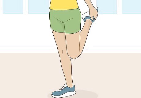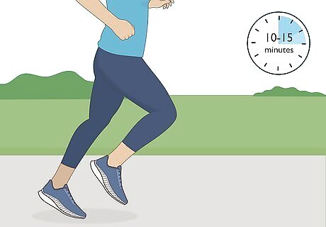 One of the easiest ways to hurt your muscles is to jump right into your exercise. Whether you're jogging up a hill, bursting into a sprint, or heading straight to the court, you need to stretch. Your muscles need time to literally get warm, which allows them to elongate and contract without tearing. Try the following warm-up before stretching. Jog lightly for 10-15 minutes. Jump, skip, shuffle, or high-step for 5-10 minutes to activate specific muscles. Swing your arms in small circles at your sides, gradually getting larger. Do 10-20 lunges, push-ups.