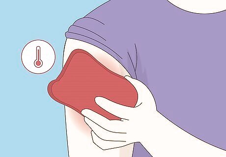 Heat relaxes your muscles to provide short-term relief. While this seems contradictory to the “apply ice” advice, it can be a great solution for aching muscles. Take a hot shower or bath or apply a heat back for 20 minutes to loosen your muscle fibers. Heat will help with the pain, but it will not help heal your muscles.