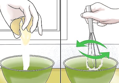 Make an egg mixture. Crack the eggs into a bowl. Whisk the eggs until they turn frothy. Once they froth up, add milk and vegetable oil. Season the egg mixture with a pinch of salt and pepper.
