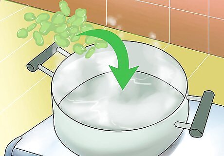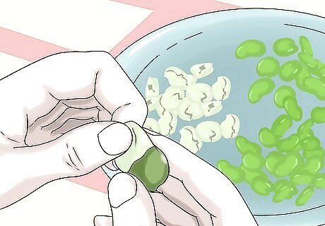 Remove the skins from the beans. Use your nail to slit the skin of each bean. Remove the green bean and throw the skin away. Set the beans aside for a few minutes. Make sure your hands have been washed before removing the skins.