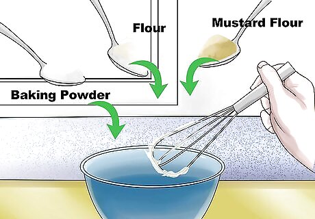 Mix the baking powder, flour, and mustard flour. In a separate bowl, mix these ingredients together. Stir these ingredients until thoroughly combined.