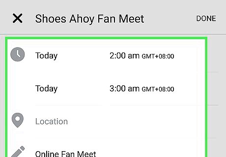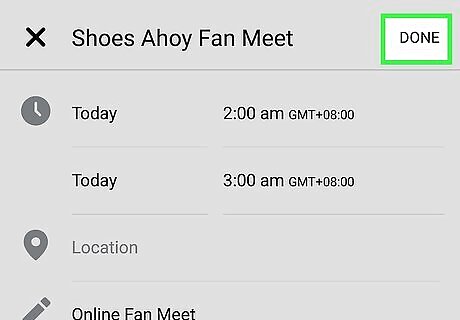 Tap Done. You'll see this button in the top right corner of your screen; tapping it will save and update your event.