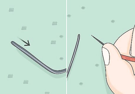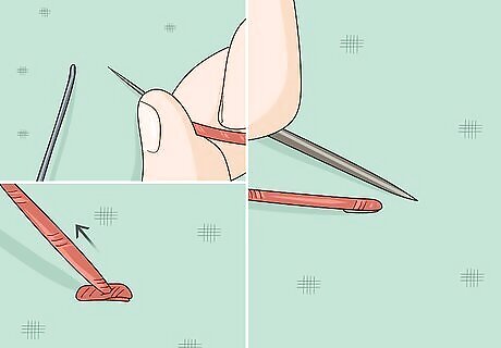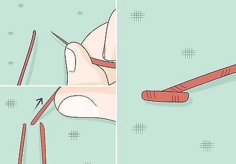 Create a twisted rope effect using the stem stitch. Bring a threaded needle under your embroidery hoop and up through the fabric. Push it down through the fabric to make 1 stitch as long as you like. Bring the needle back up through the fabric so it comes out halfway up the side of the stitch you made. Insert the needle back down to make another stitch. You should be following the outline of the letter and be able to stitch more letters with the same piece of yarn. Stem stitch works well for curves, loops, or cursive letters because you can direct the twist of each stitch.