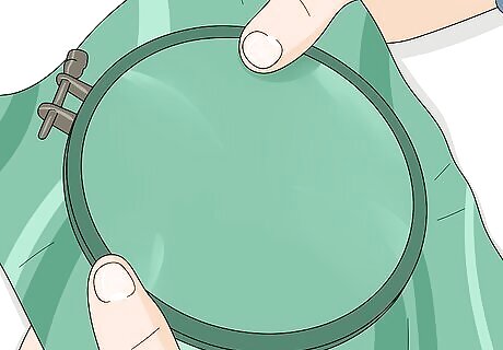 Hoop the fabric and stabilizer. Take an embroidery hoop that will fit all of the letters you're embroidering and open it. Place the fabric on the hoop so the stabilizer is on the bottom. Lay the top of the hoop over the fabric and tighten it in place. The fabric should be taut between the hoop.