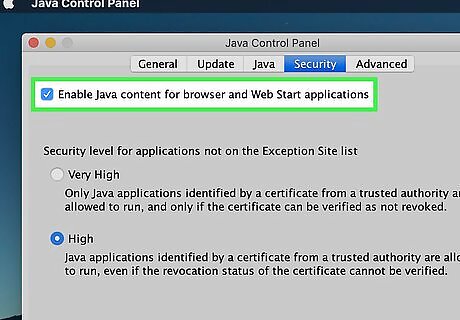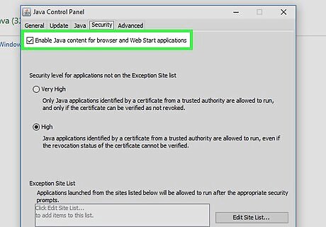 Close any open Internet browsers, then re-launch the Internet browser to allow your new Java settings to take effect.