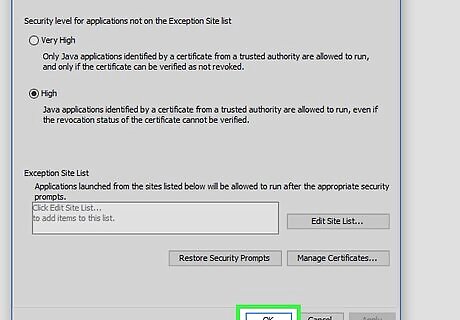 Click on "Apply," then select "OK." Your new Java Control Panel settings will now be saved.