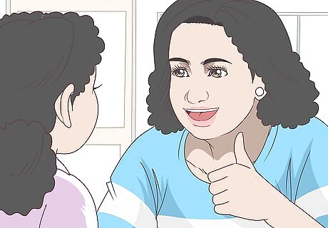 Demonstrate patience and positivity when your toddler talks. No matter what sounds or words your toddler speaks, smile at them, offer praise, and make eye contact. Show your child that speaking is a positive, safe, and worthwhile activity, even it getting out those words is frustrating or intimidating to them. Keep in mind that for many young children, speaking takes a lot of courage.